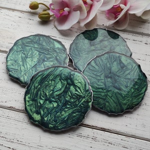 Emerald Green Resin Coasters Set: Handmade Wavy Coffee Table Decor