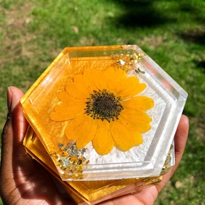 Coasters Yellow Daffodil Flower, Handmade Epoxy Resin Coasters