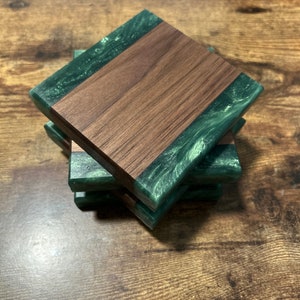 Green & Gold Flower Coasters, Handmade Epoxy Resin Coasters with Gold Accents, Resin Coaster Set, Gifts for Home with Custom Colors